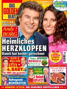 Das Goldene Blatt Magazin hält einmal die Woche rund 1,3 Millionen Leser über Neuigkeiten rund um Promis und Adelige auf dem Laufenden. Hinzu kommen Ratgeber, Reiseberichte, Mode-Trends, Rezepte und Rätsel.