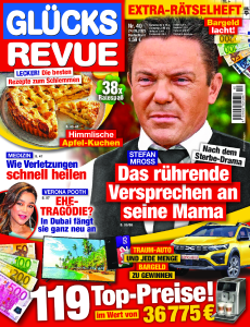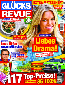 Die „Glücks Revue“ Ausgabe Nr. 38 vom 10.09.2025 bietet eine abwechslungsreiche Mischung aus Rätseln, Promi-News und nützlichen Tipps. Ein Highlight ist das große Rätselmagazin mit spannenden Gewinnen. Unter den Promi-Geschichten findet sich ein Bericht über Elena Uhlig und Fritz Karl, dessen Urlaub in Amerika eine dramatische Wendung nahm, als ihr Sohn einen Angelhaken in den Arm bekam. Trotz des Vorfalls bewältigte die Familie die Situation mit Humor. In den Gesundheitsartikeln wird unter anderem erläutert, wie man entspannt durch die Wechseljahre kommt, und in der Rubrik „Leben & Genießen“ wird über die Vorzüge von High-Protein-Produkten diskutiert. Kulinarisch verführt die Ausgabe mit Karamell-Rezepten und einer aromatischen Kürbis-Küche. Auf der Seite der Unterhaltung wird Bibi Blocksbergs 45. Jubiläum gefeiert und der internationale Tag der Schokolade gewürdigt. Zudem bietet die Ausgabe spannende Einsichten in den weltweiten Trend von 3D-gedrucktem Fleisch als potenzielles Lebensmittel der Zukunft. Die Leser können außerdem nützliche Ratschläge zu Mietrecht und Lebensmittelaufbewahrung entdecken. Zusammengefasst, die „Glücks Revue“ Nr. 38 ist eine unterhaltsame und informative Lektüre mit einer Vielzahl von Themen, die für abwechslungsreiche Unterhaltung sorgen.