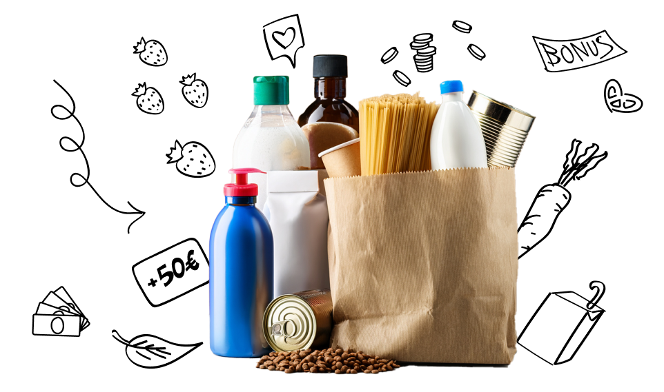 Typische Kategorien sind Babyprodukte, Lebensmittel, Drogerie, Tierfutter und Haushaltswaren.