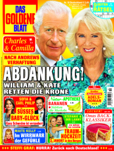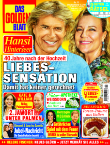 Das Goldene Blatt Magazin hält einmal die Woche rund 1,3 Millionen Leser über Neuigkeiten rund um Promis und Adelige auf dem Laufenden. Hinzu kommen Ratgeber, Reiseberichte, Mode-Trends, Rezepte und Rätsel.