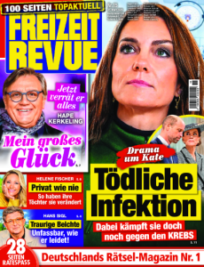 Das Freizeit Revue Magazin erscheint seit 1970 wöchentlich und bringt sämtliche Neuigkeiten rund um Promis, Gesundheit, Recht und Unterhaltung in einer kompakten Form zusammen. Das bunte Kaleidoskop der Freizeit Revue Zeitschrift dreht sich nicht nur rund um private Einblicke in das Leben der Reichen und Schönen, sondern bringt auch saisonale Rezepte, aktuelle Rechtsurteile, Tiergeschichten, Horoskope, Reiseempfehlungen und eine Lebensberatung mit sich. Rund 30 Seiten des Hefts Freizeit Revue nimmt der beliebte Rätselblock ein: Kreuzworträtsel, Sudoku und vieles mehr sorgen für langen Ratespaß. Die Ausgaben FreizeitRevue richten sich vornehmlich an Frauen ab 50 Jahren. Eine klare Gliederung in Rubriken sorgt für einen leichten Überblick: