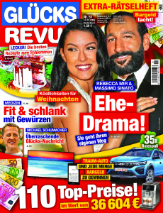 Die "Glücks Revue", EXTRA-RÄTSELHEFT Nr. 50, bietet in ihrer aktuellen Ausgabe vielfältige Themen für die Adventszeit. Auf Seite 4 wird Helene Fischers Rückkehr ins Rampenlicht beleuchtet, bei der sie ihr persönliches Kinder-Glück mit der Welt teilt. Fans dürfen sich über neue Projekte der Sängerin und geplante Überraschungen freuen. Auf den Seiten 42/43 und 50 finden Leser inspirierende Rezepte für festliche Menüs und weihnachtliche Desserts, die das Herz eines jeden Hobbykochs höherschlagen lassen. Stefan Mross’ Lebenskrise wird auf den Seiten 58/59 thematisiert und gewährt Einblicke in bewegende Momente aus dem Leben des beliebten Moderators. Für Rätselfreunde bietet die Ausgabe aufregenden Rätselspaß mit Chancen auf attraktive Preise, darunter ein Traum-Auto und Bargeldgewinne im Wert von 35.782 Euro. Neben spannenden Gewinnchancen laden humorvolle Witze der Woche und ein Glücks-Horoskop zur Unterhaltung ein. Die Zeitschrift bietet zudem praktische Ratgeber, wie Tipps zur Pflege von Winterjacken und zur Nutzung von E-Bikes im Winter. Die Glücks Revue schafft eine gelungene Mischung aus Promigeschichten, köstlichen Rezepten und spannenden Rätseln für die festliche Saison.