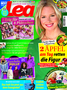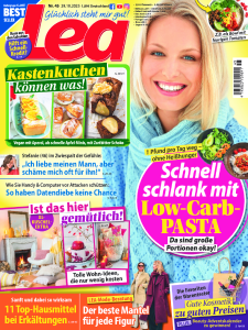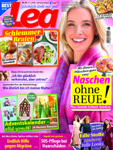 Das Lea Magazin ist eine moderne Frauenzeitschrift mit zahlreichen Ratschlägen für Familie, Beruf und Freizeit nach dem Motto „Glücklich steht mir gut!“. Dabei liefern die Ausgaben saisonale Rezepte, Tipps für die Gesundheit und regen zum Entspannen an.