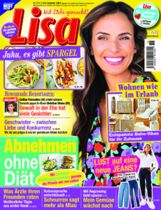 Das lebensnahe und junge Lisa Magazin bietet jede Woche ein breites Spektrum an Service-Themen und richtet sich vornehmlich an Frauen zwischen 20 und 50 Jahren, die mitten im Leben stehen. Dabei beinhaltet das Heft Ratgeber rund um die Aspekte Ernährung und Gesundheit, neueste Food- und Diät-Trends sowie zahlreiche Rezepte für den jeden Anlass. Abgerundet wird das Magazin Lisa durch kreative DIY-Ideen, Reiseberichte, Haushaltstipps und Mode-Empfehlungen für das Büro sowie für die Freizeit. Hinzu kommen regelmäßig tolle Gewinnspiele mit attraktiven Preisen. Das Magazin regt zum Durchblättern an, hat dabei auch komplexe Themen, wie emotionale Reportagen im Programm. Loslassen lernen, Dinge, die wirklich glücklich machen und wie viel Vernunft richtig ist – daraus macht die Lisa-Redaktion spannende Storys. Der Heftinhalt gliedert sich in die folgenden Rubriken: