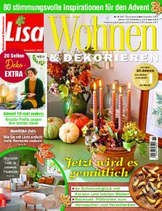 Das Lisa Wohnen & Dekorieren Magazin liefert einmal im Monat Ideen für die Gestaltung von Haus und Garten. Neben Wohnreportagen finden sich in den Ausgaben Anregungen für saisonale Feste sowie Tipps zum Hausbau und Umbau.