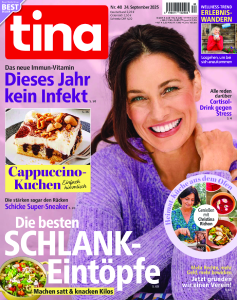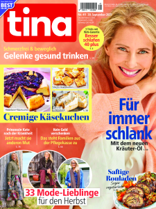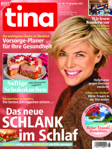 Die wöchentlich erscheinende Tina Zeitschrift liefert emotionale Geschichten und Reportagen mitten aus dem Leben. Hinzu kommen Beauty-Tipps, Neuigkeiten aus Beauty und Mode sowie Ratgeber rund um die Themen Gesundheit & Ernährung.
