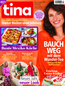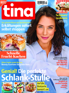 Mit der Zeitschrift Tina werden insbesondere Frauen zwischen 30 und 60 Jahren angesprochen. Woche für Woche finden Leser spannende Reportagen und inspirierende Geschichten mitten aus dem Leben in den Ausgaben Tina. Diese treffen auf nützliche Tipps für den Alltag: Man bleibt über aktuelle Verbraucher-Themen auf dem Laufenden, erhält abwechslungsreiche Rezepte und Wissenswertes rund um Ernährung, Gesundheit und Medizin. Hinzu kommen aktuelle Trends in Sachen Mode und Beauty. Gewinnspiele, Hilfestellungen für den Haushalt und ein Horoskop runden das Tina Magazin ab. Auch Goodies liegen den Ausgaben regelmäßig bei: Das können zum Beispiel CDs, Küchenkalender oder Sonderhefte mit beliebten Tina Rezepten von Promiköchen sein. Die Tina Zeitschrift ist inhaltlich in die folgenden Rubriken unterteilt: